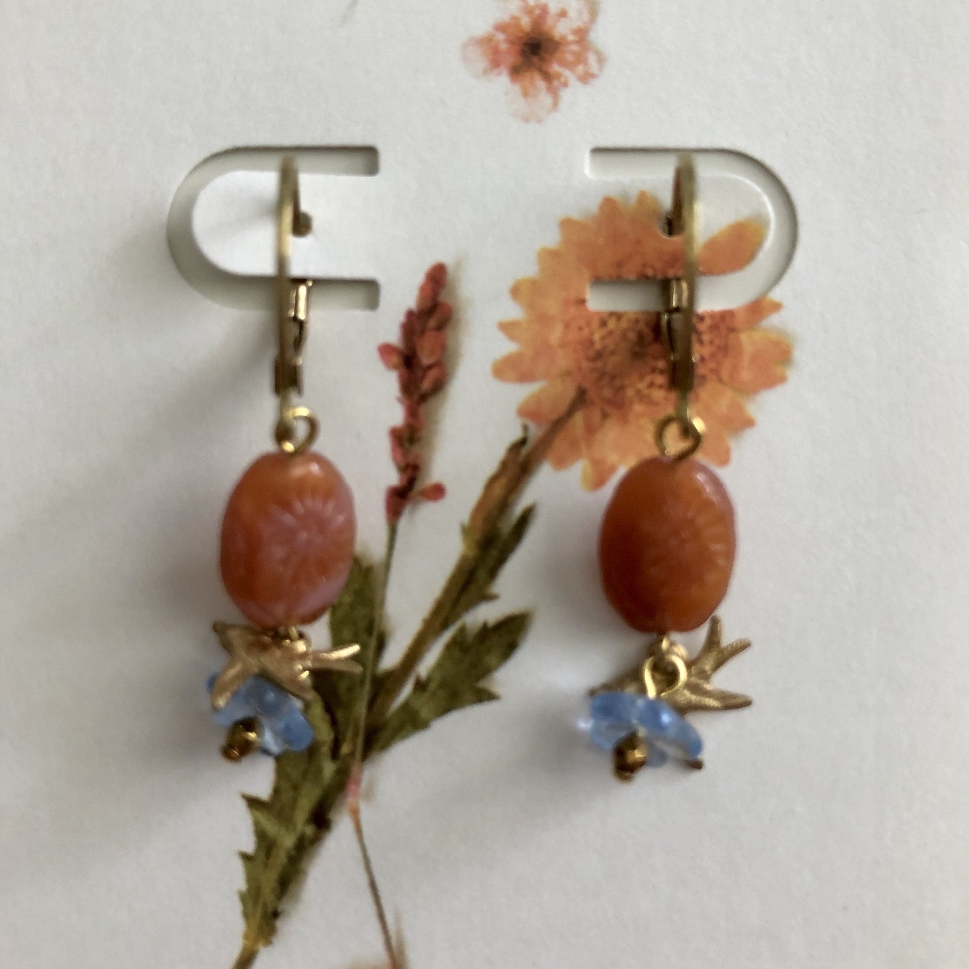 Double flower hummingbirds earrings