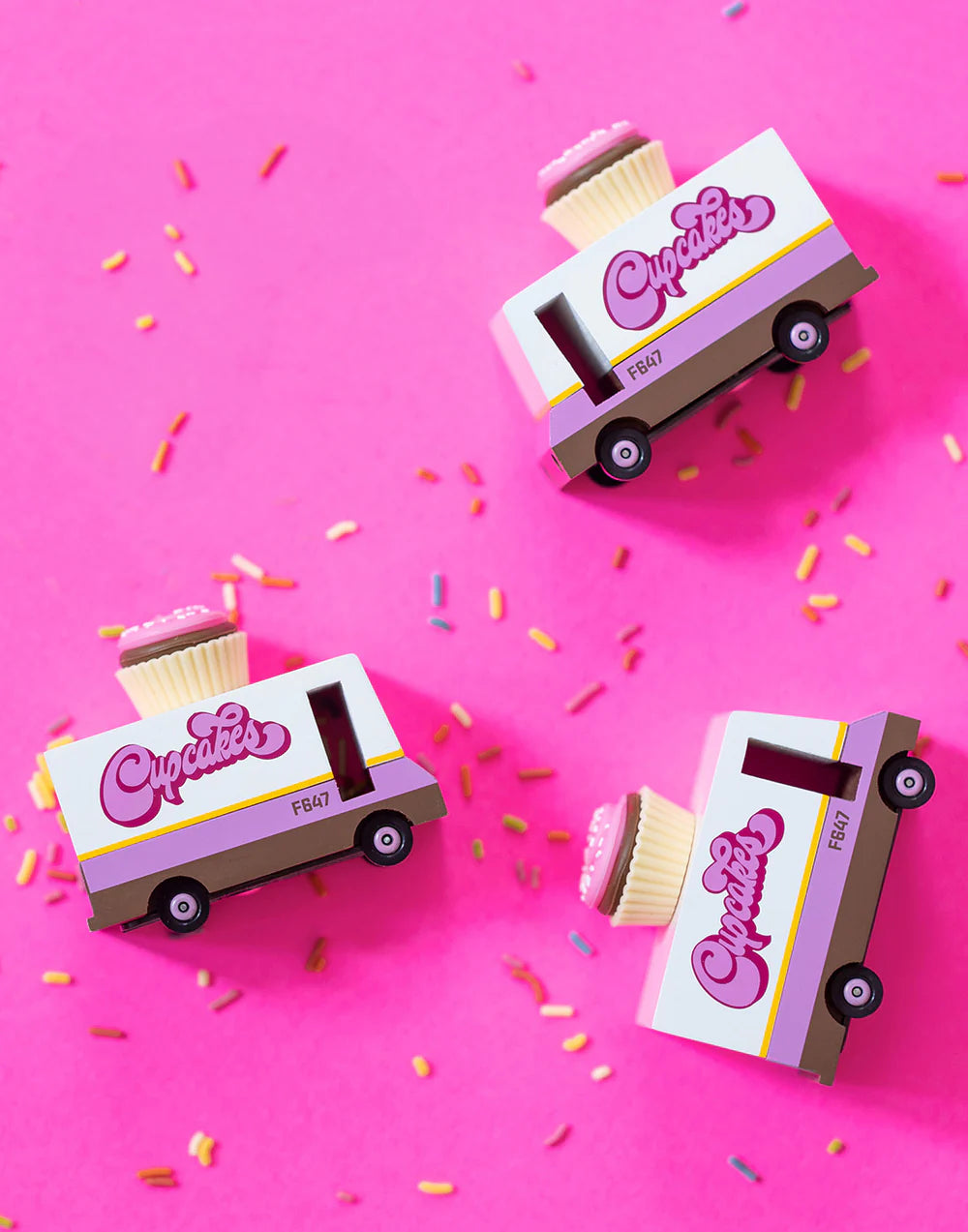 There's never been a sweeter wooden toy. Please welcome the Cupcake Van: complete with groovy graphics and an adorable squishy topper. Sprinkle this CANDYCAR® into any playset or collection! Suitable for all kids over 3 years and collectors of all ages.